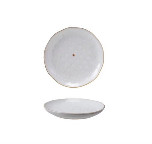 Decorative Coarse Terra-cotta Bowl w/ Raised Dots | Volcano Finish, White