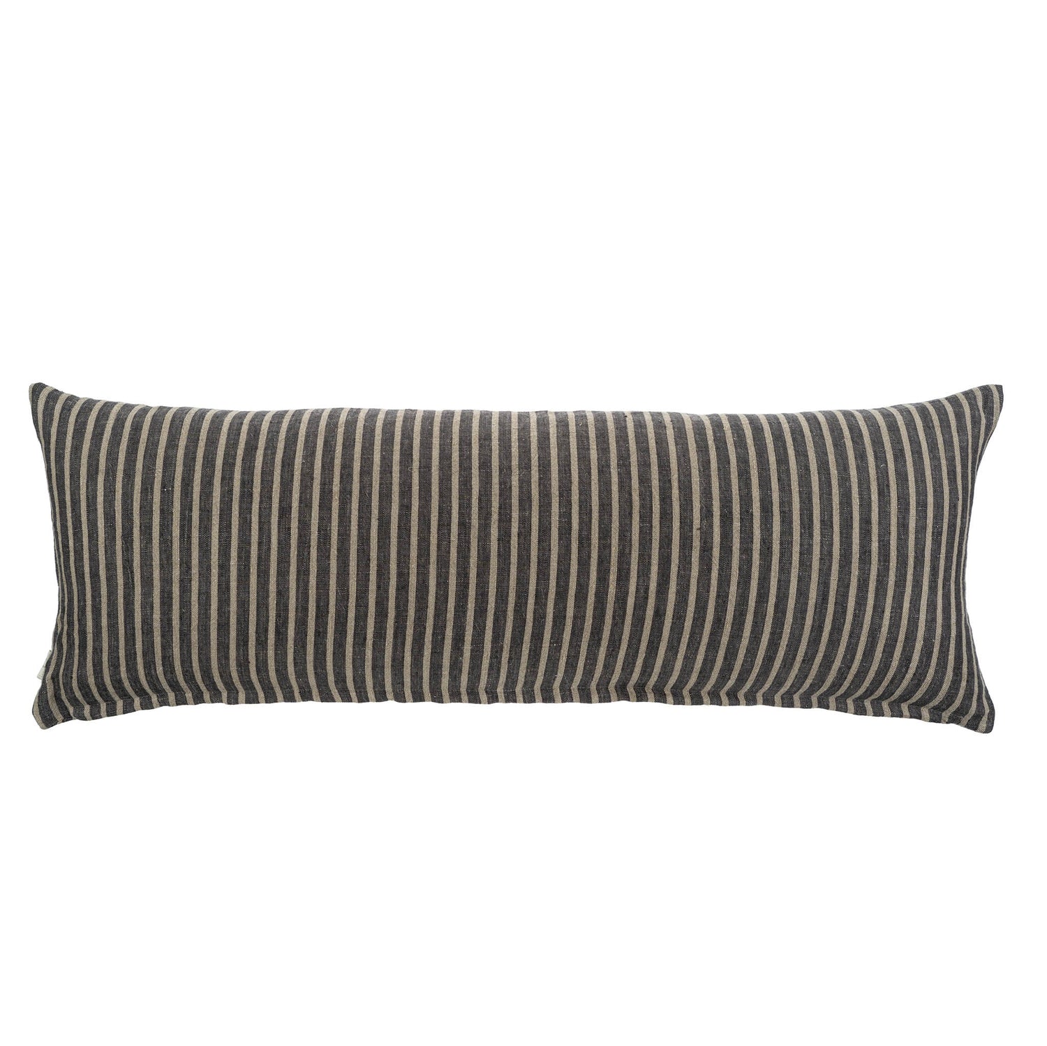 The Pinstripe Linen Pillow adds an effortless relaxed atmosphere with its easy-to-style vertical stripes in natural linen and charcoal grey. Crafted from soft stonewashed Belgian linen, it embodies quiet luxury. Measuring a generous 15"x42", it becomes the perfect companion for moments of relaxation on the bed, perhaps while engrossed in a novel. Whether styled solo or as part of an arrangement, it looks at home on both a queen or king-size bed.