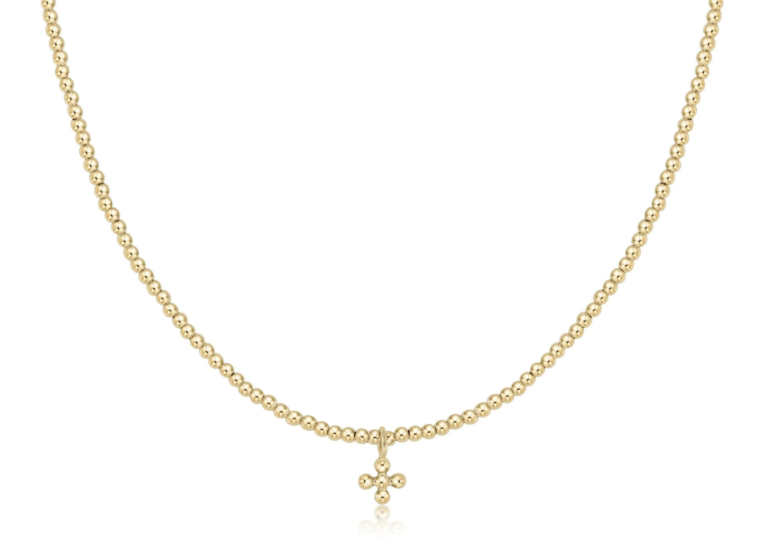 17" choker classic gold 2mm bead | classic beaded signature cross small gold charm
