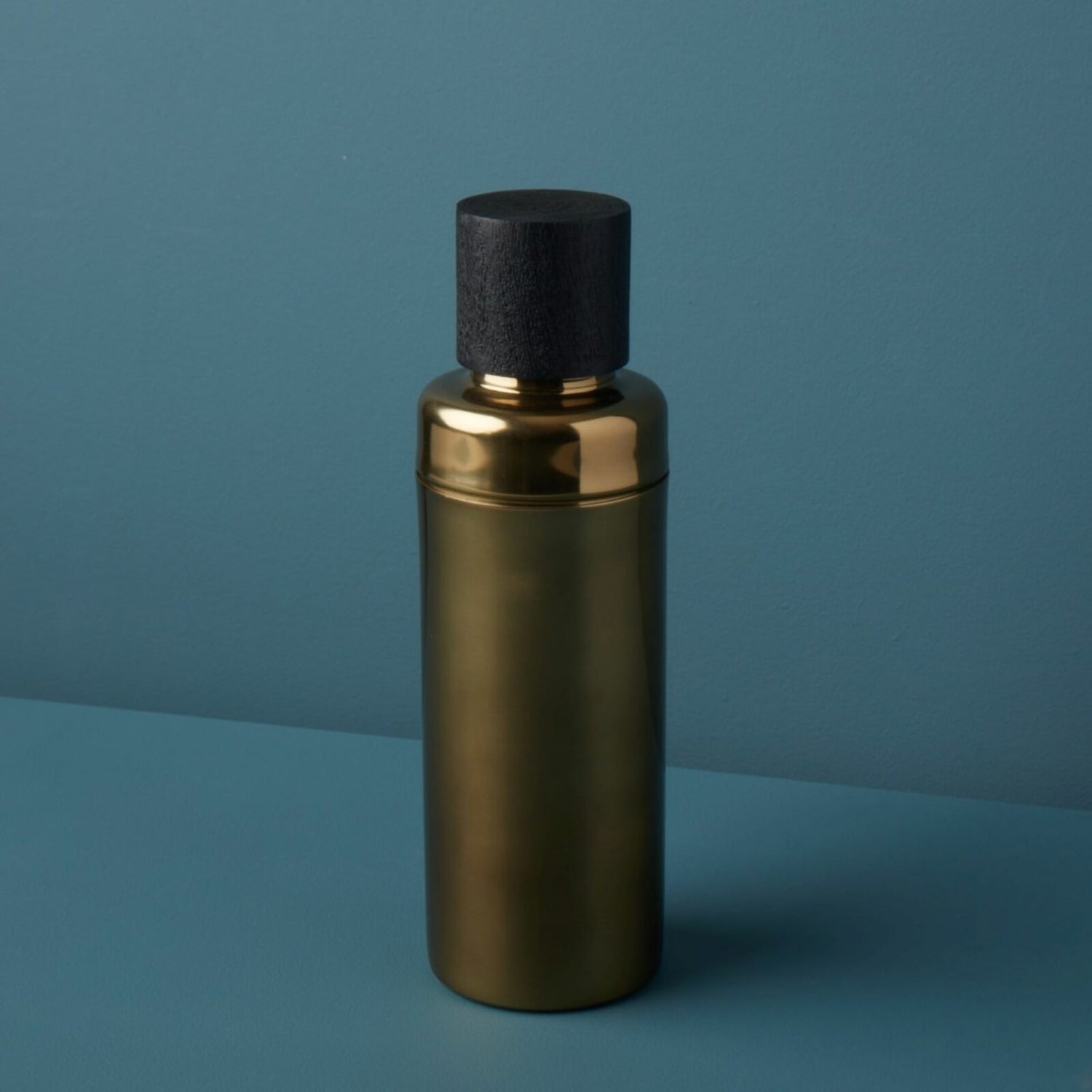 Shake things up with our sleek and sultry Arendal Cocktail Shaker, a perfect pairing to our Arendal Hanging Bar Set. This crafty cocktail shaker boasts a darkened color palette a lid handcrafted from protected mango wood groves in India. Each aged bronze shaker is crafted by a pair of hands before finding itself in yours.