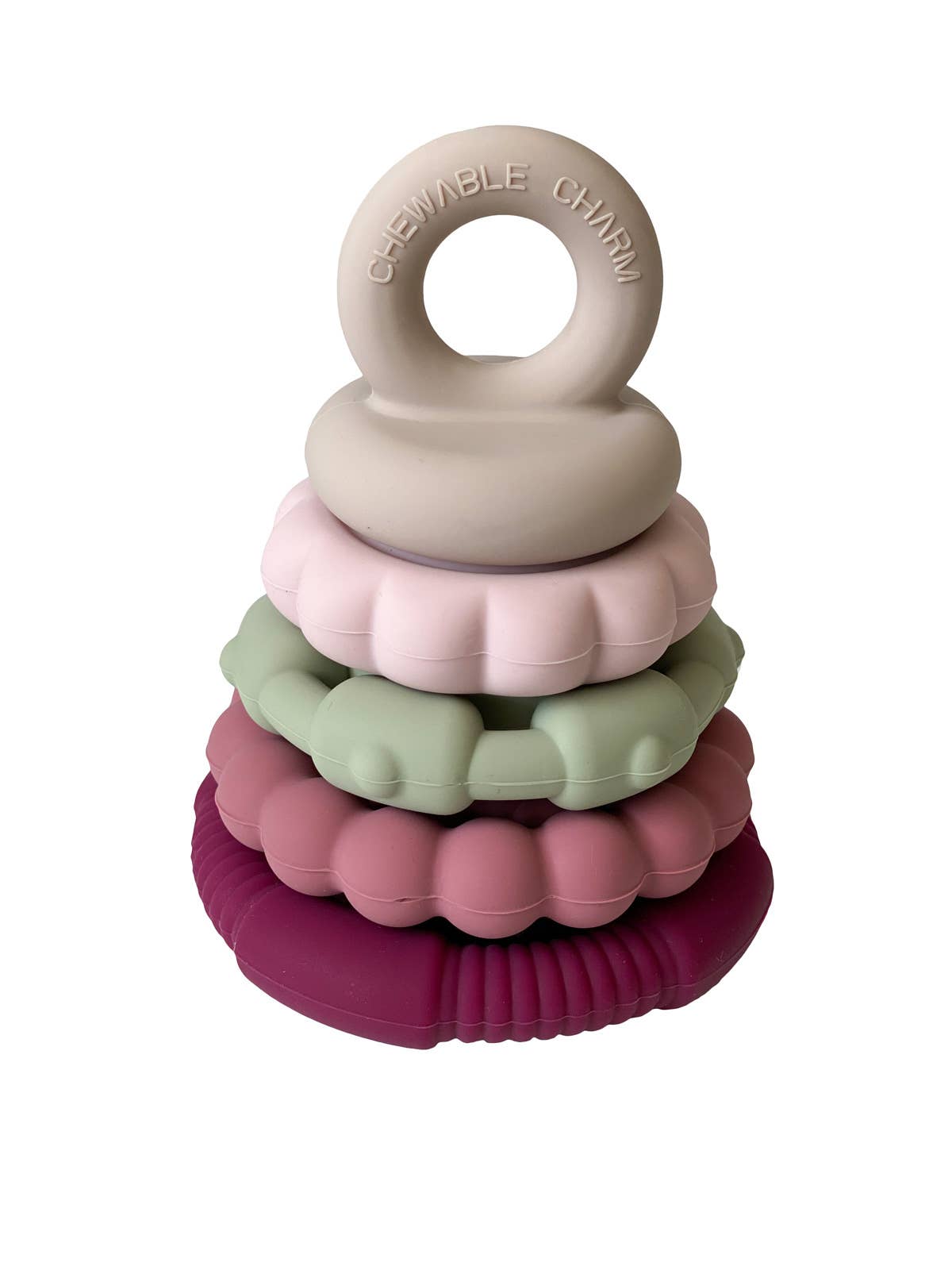 The Aspen Teething Stacker is the ultimate multi-purpose toy. Your baby will quickly discover how the stacking rings make the best soothing teethers! Stackers come in packaging bags and need to be assembled into the product box by the store one received. This is to prevent box damage in shipping. Babies will love chewing on the silicone rings and grow into using their hand-eye coordination by stacking the rings. Materials: - 100% Food grade silicone