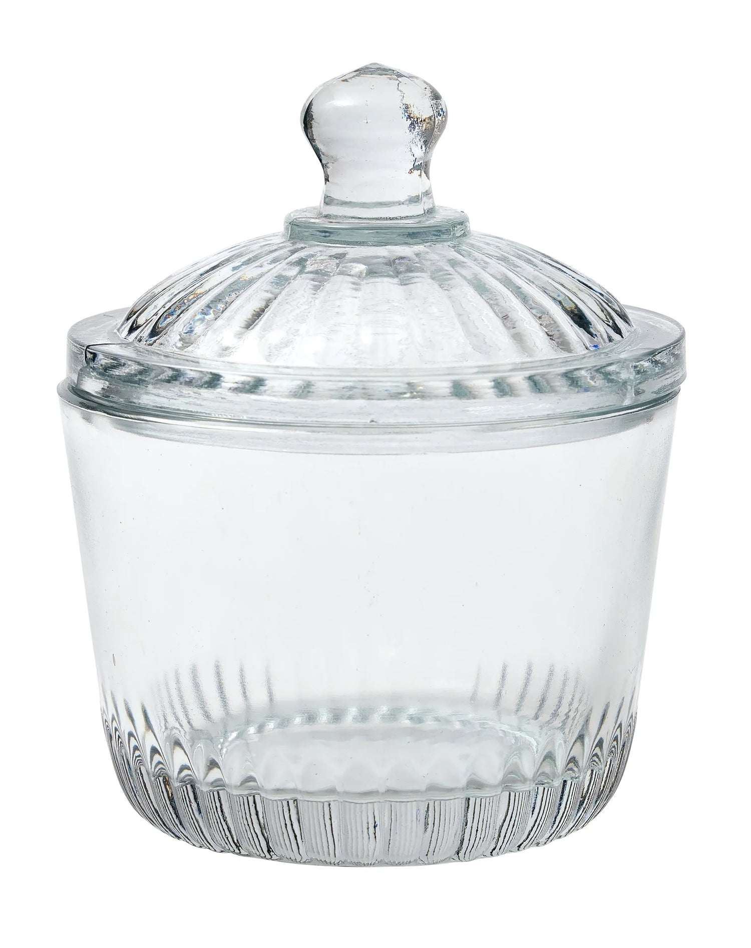 Inspired by the timeless elegance of 1930s Depression glass, the French Bistro Bon Bon Jar blends vintage charm with modern functionality. This textured jar is crafted from durable glass and the lid features a rounded knob for effortless access. Perfect for storing cookies, chocolates or other confections, this canister adds sophisticated style to any countertop or coffee table.