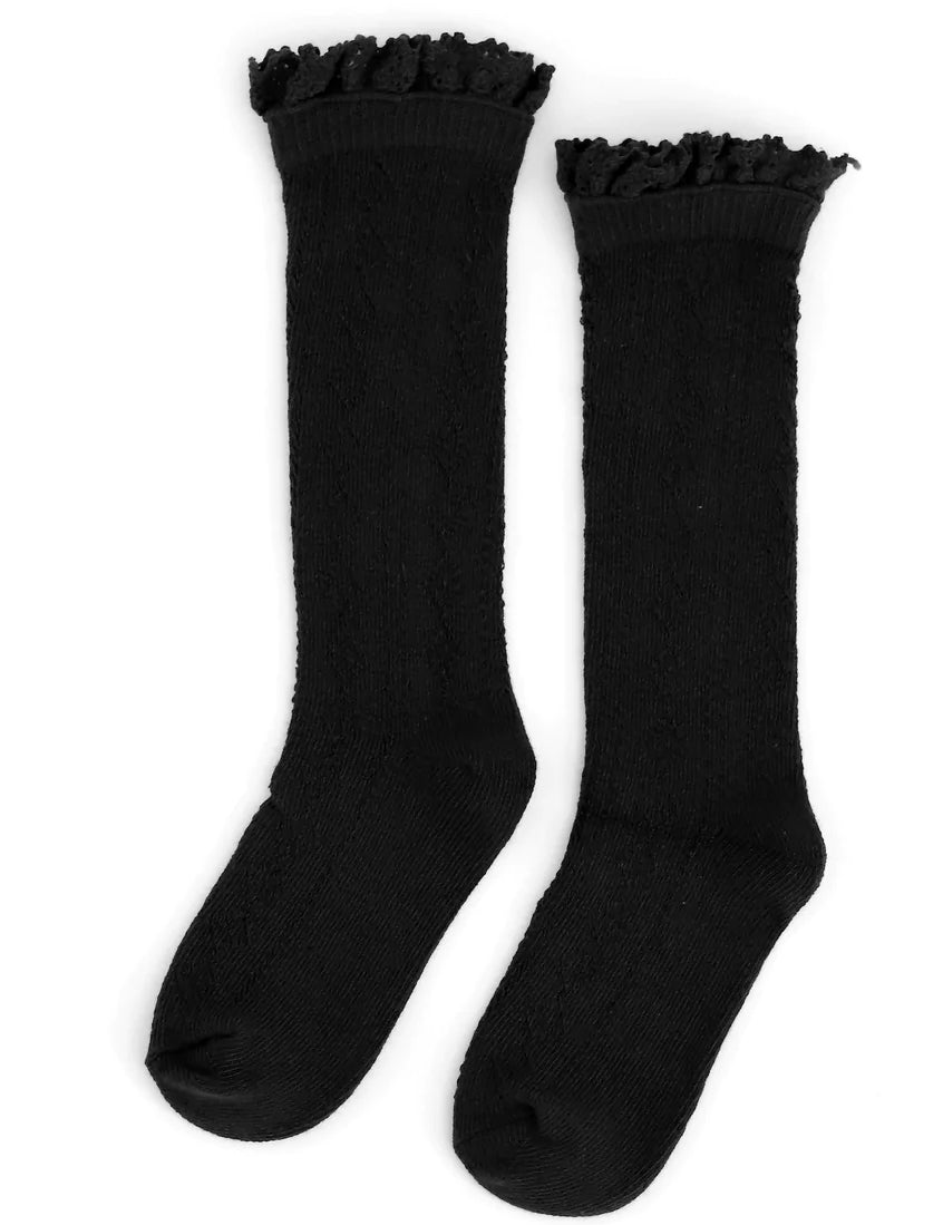 Black Fancy Lace Top Knee High Socks