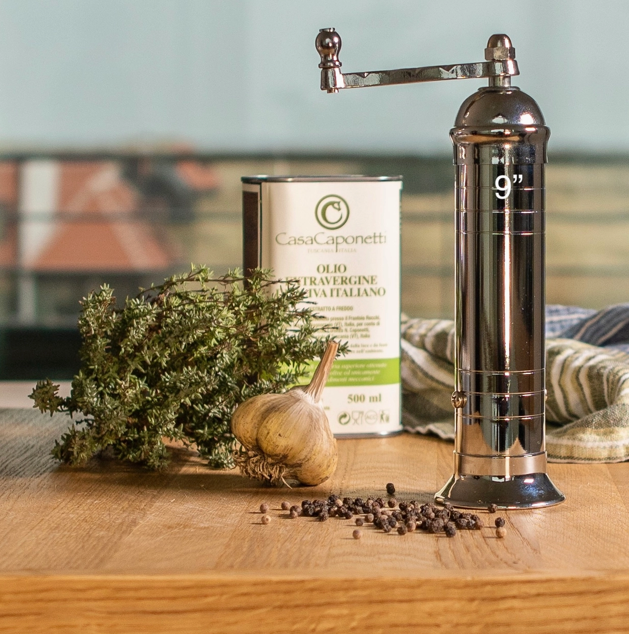Experience the joy of enhancing your culinary creations with the 9" 'Chrome Mill' from Greek Alexander Handcrafted Mills.