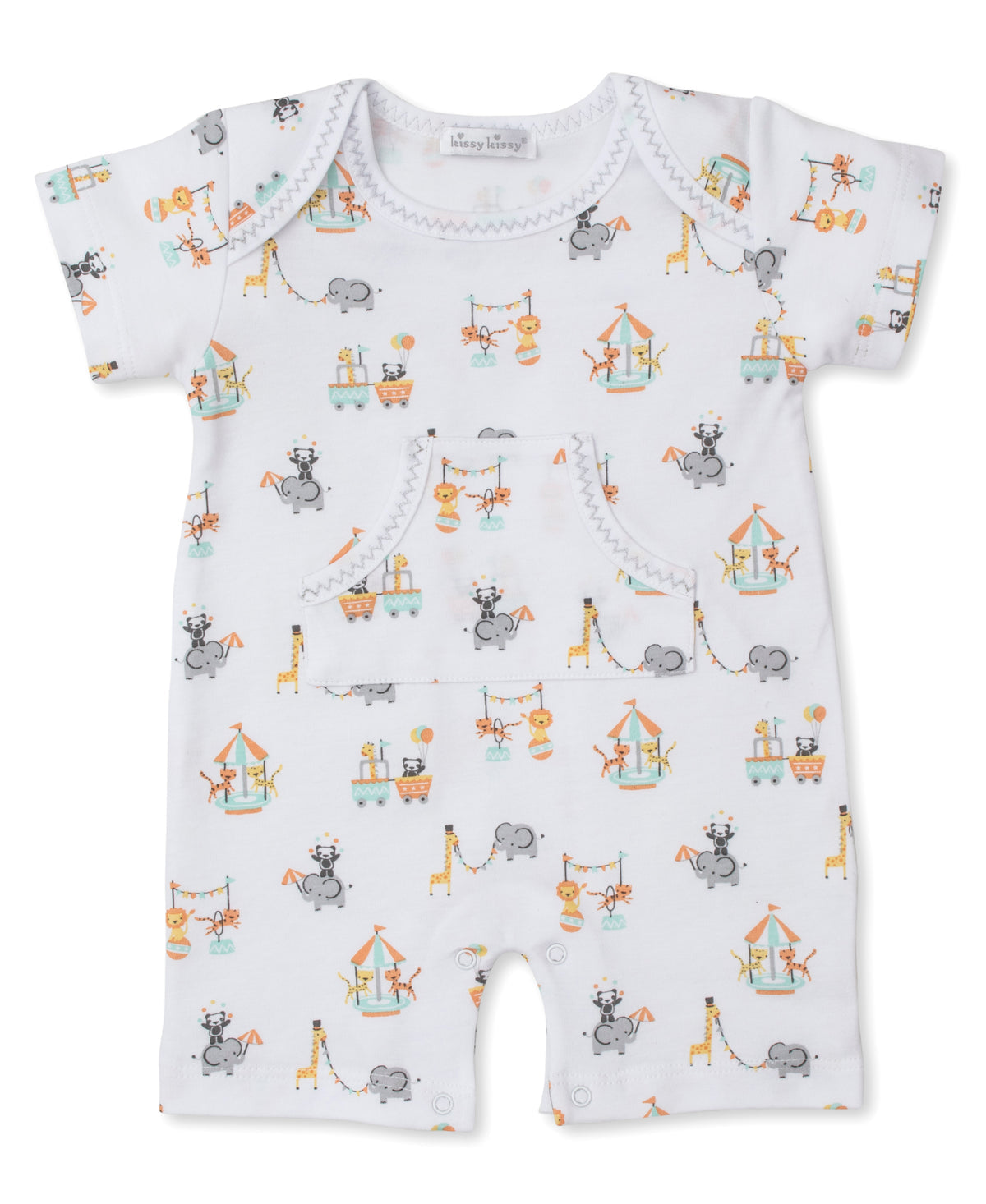 Our fun circus crew print covers this playsuit sure to baby cute, comfortable, and cozy. Made from the softest Pima cotton for the ultimate in comfort.