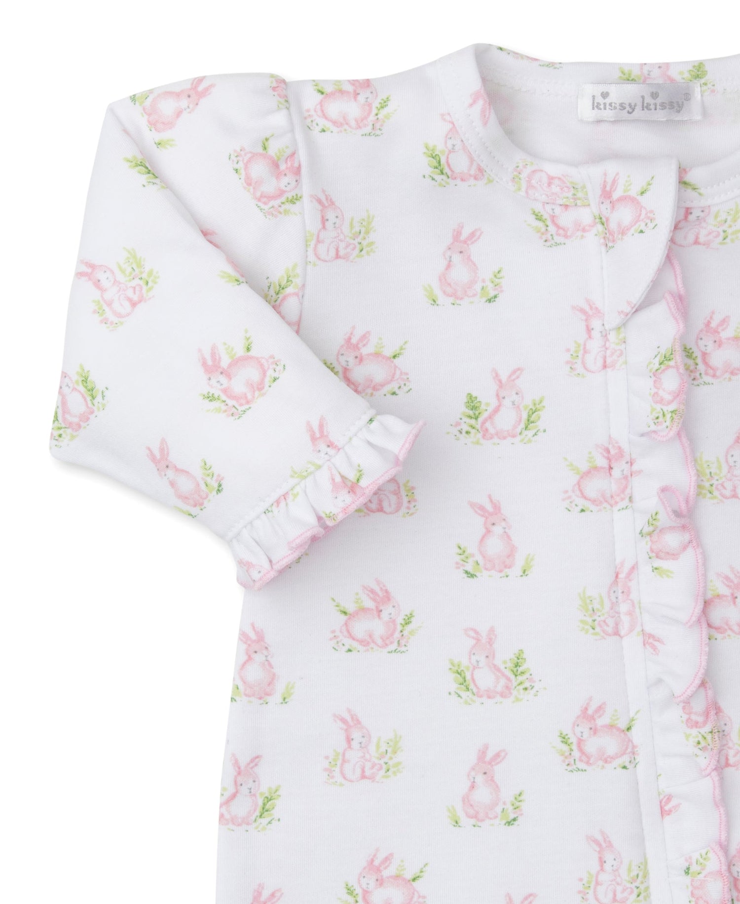 Our fun pink bunny print covers our cozy footie for your baby. Made from the softest Pima cotton for ultimate comfort.