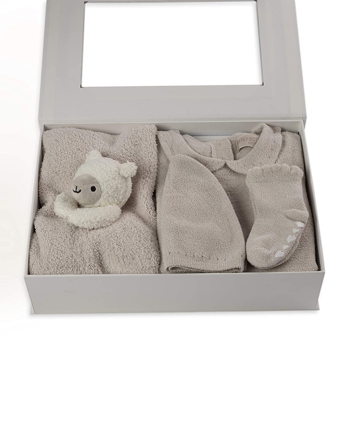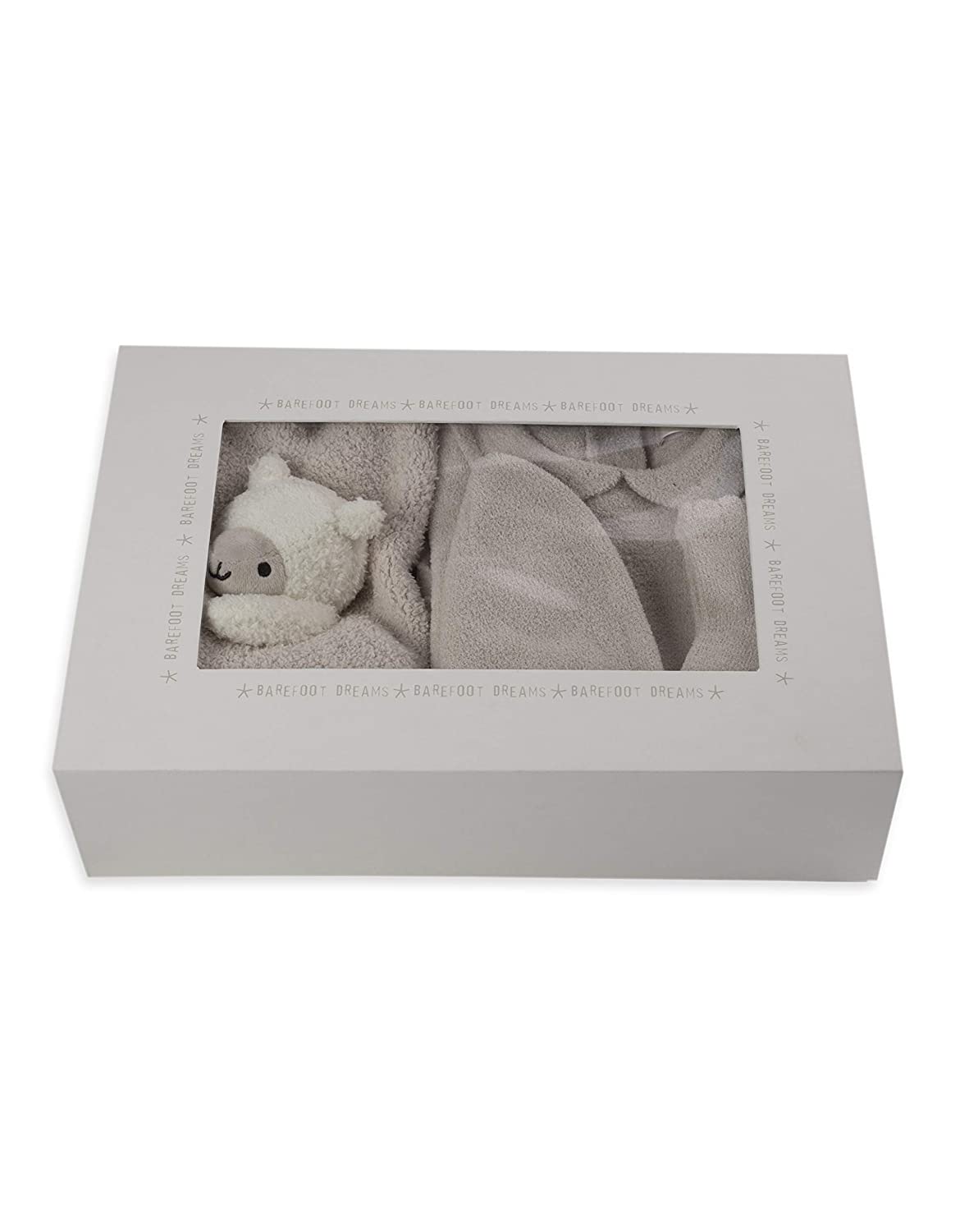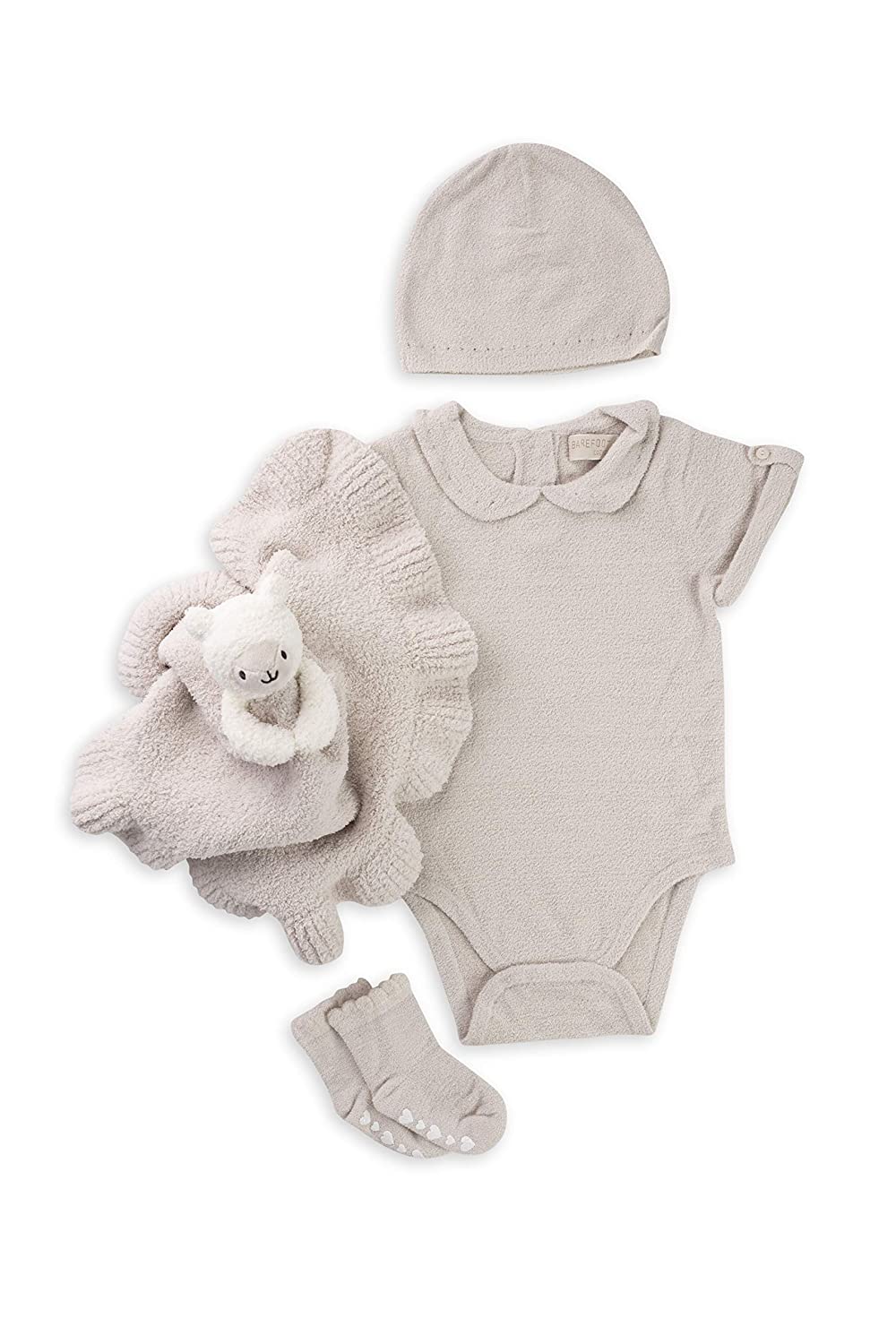 Perfect for gift giving, this four-piece baby bundle a dream to give or recieve. Bundle includes eyelet beanie, Peter Pan collar onesie with button detail on sleeve, coordinating Blanket Buddie, and pair of ruffled socks with heart pattern grip on sole. Comes in a branded gift box.