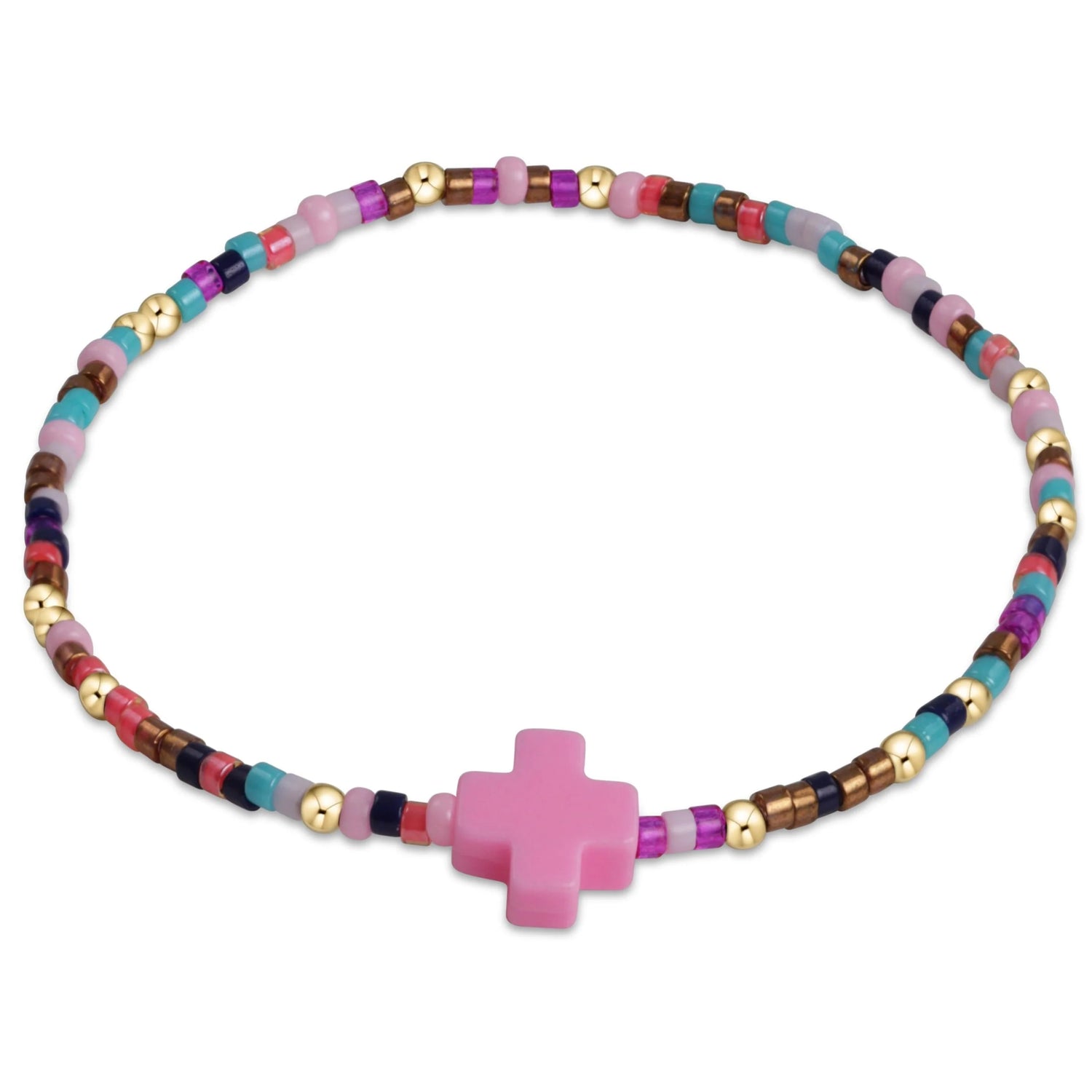 • Made with 14kt gold-filled beads and various colors of seed beads with our bright pink signature cross