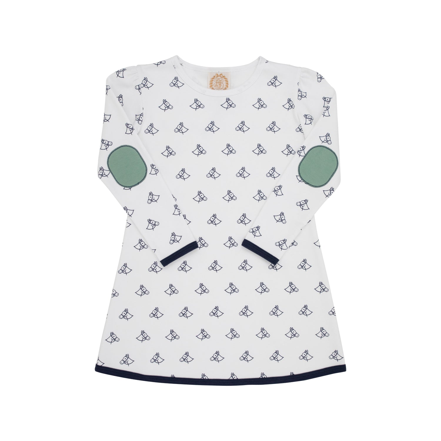 Our Eleanor's Elbow Patch Dress is perfectly practical + preppy! Featuring Pony Portrait with Gallatin Green Elbow Patches and Nantucket Navy Trim, your little lady will look simply adorable in this comfortable dress.