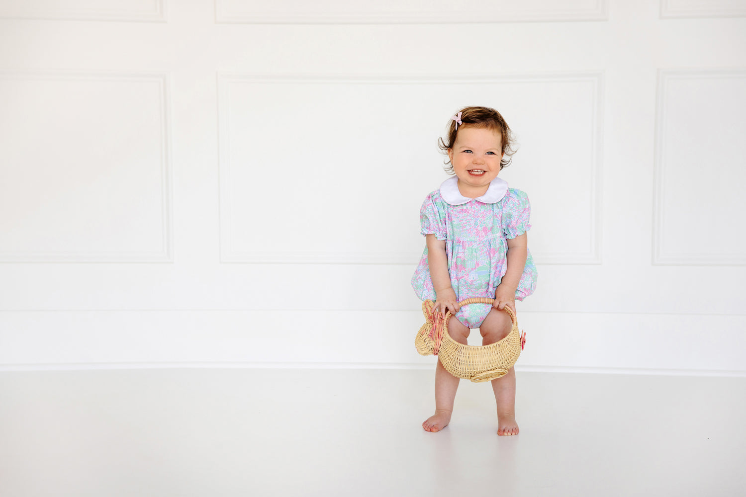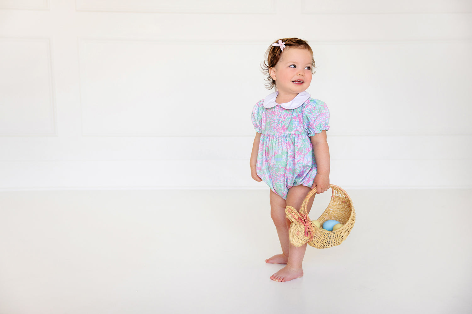 The Holly Day Bubble is printed perfection! Featuring Beasley Blooms with Worth Avenue White, this little bubble will bring the sweetest smiles wherever she goes.
