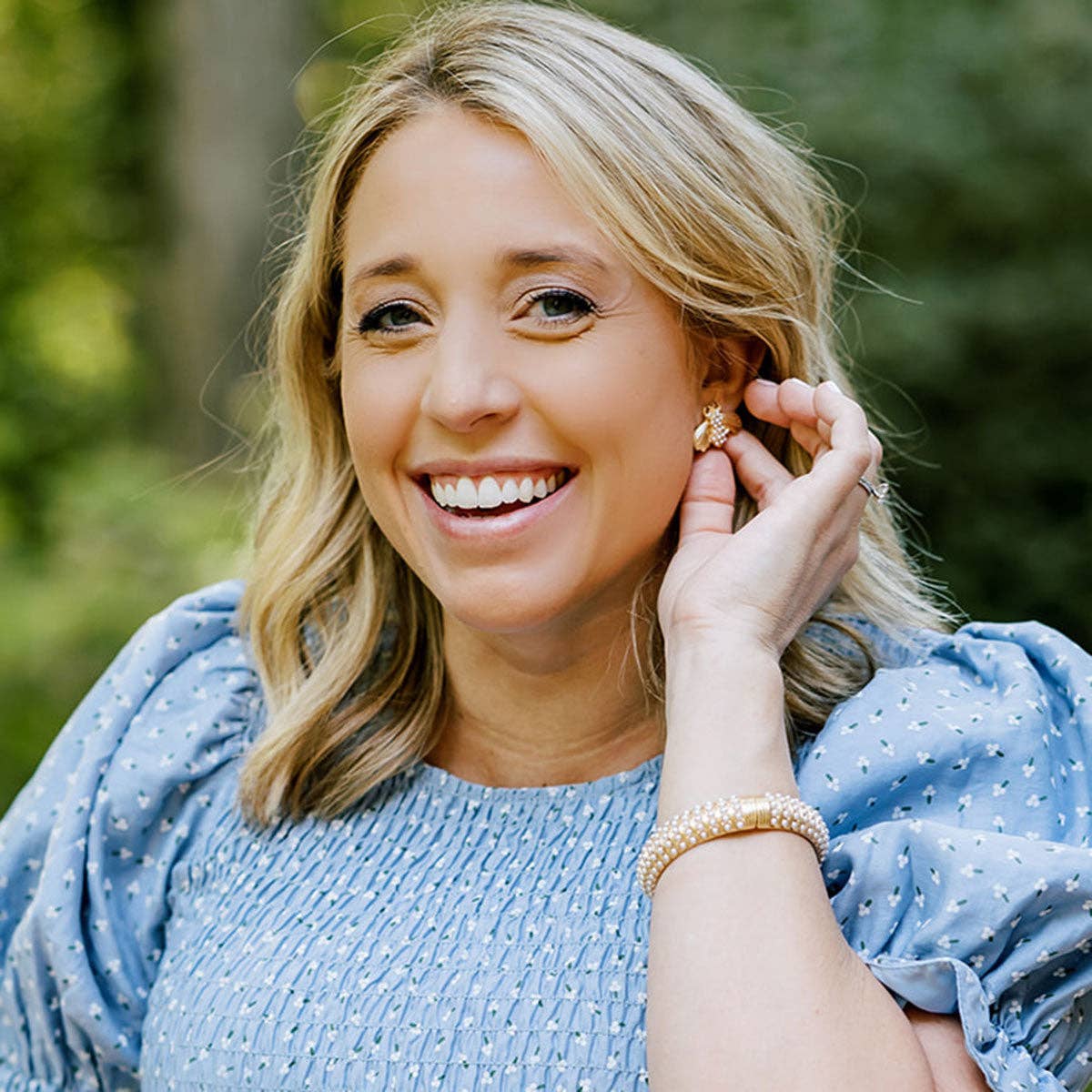 Jackie Pearl-Studded Statement Hinge Bangle | Ivory