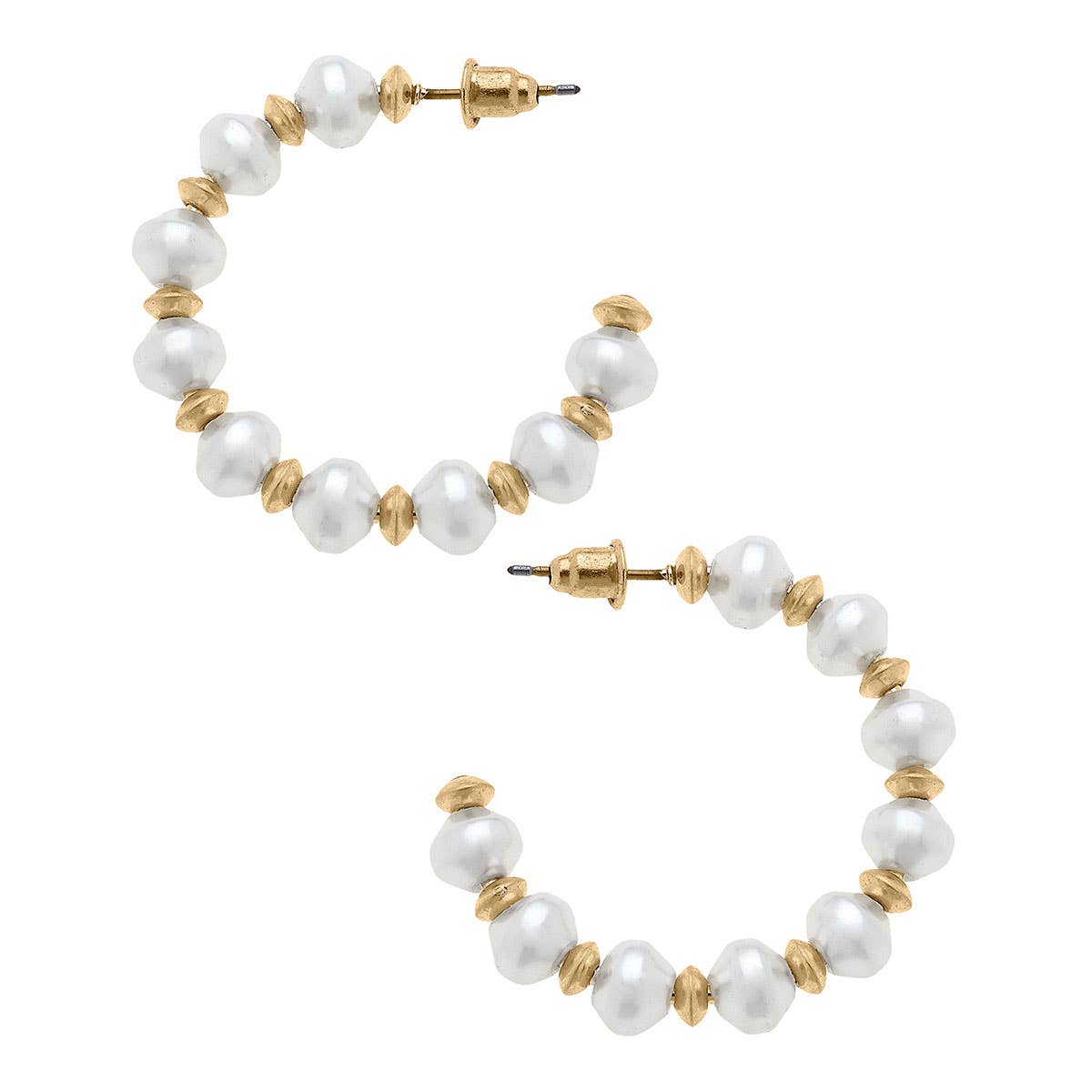 Layne Baroque Pearl Hoop Earrings in Ivory