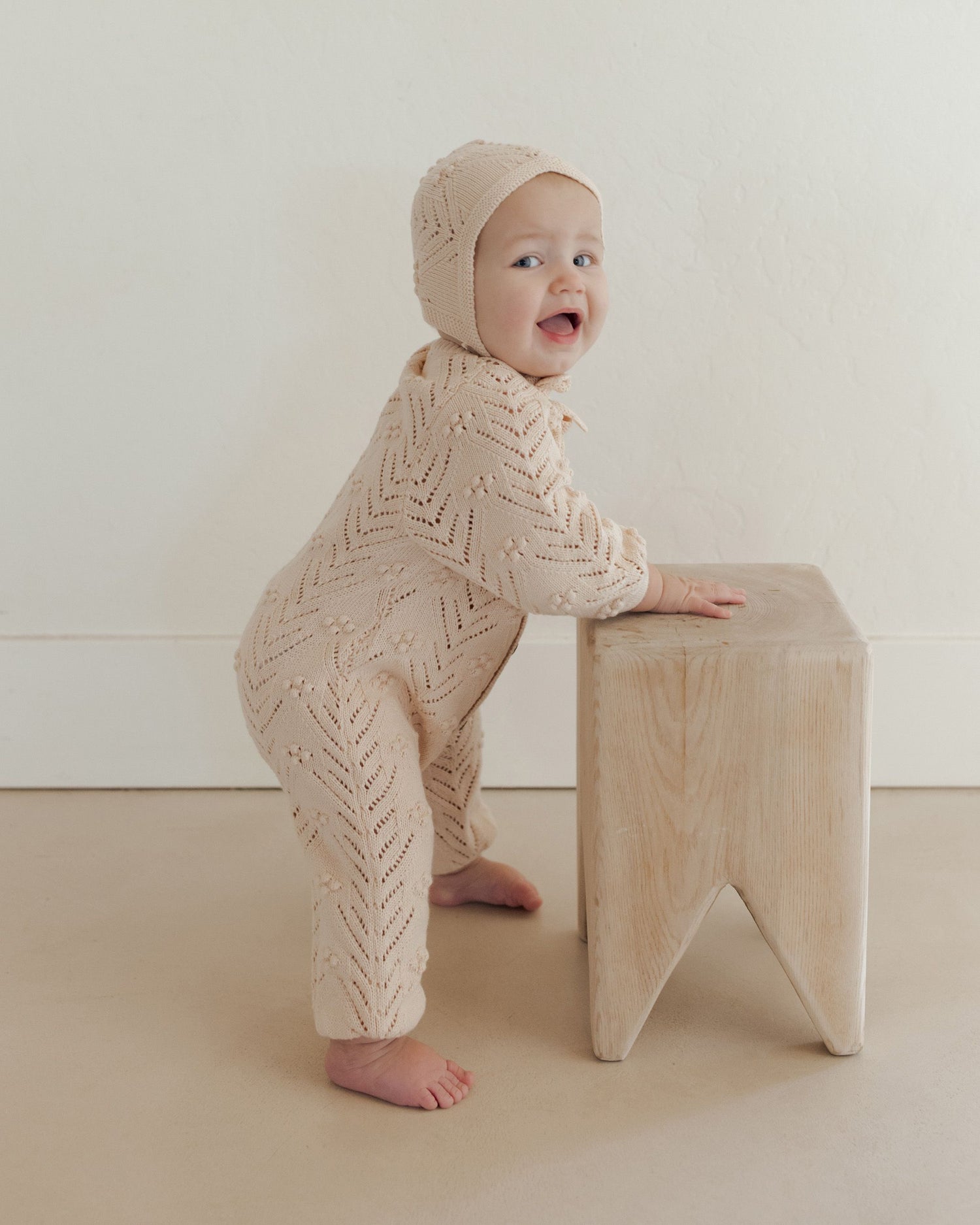Decrease quantity for Long Sleeve Bobble Romper | Natural