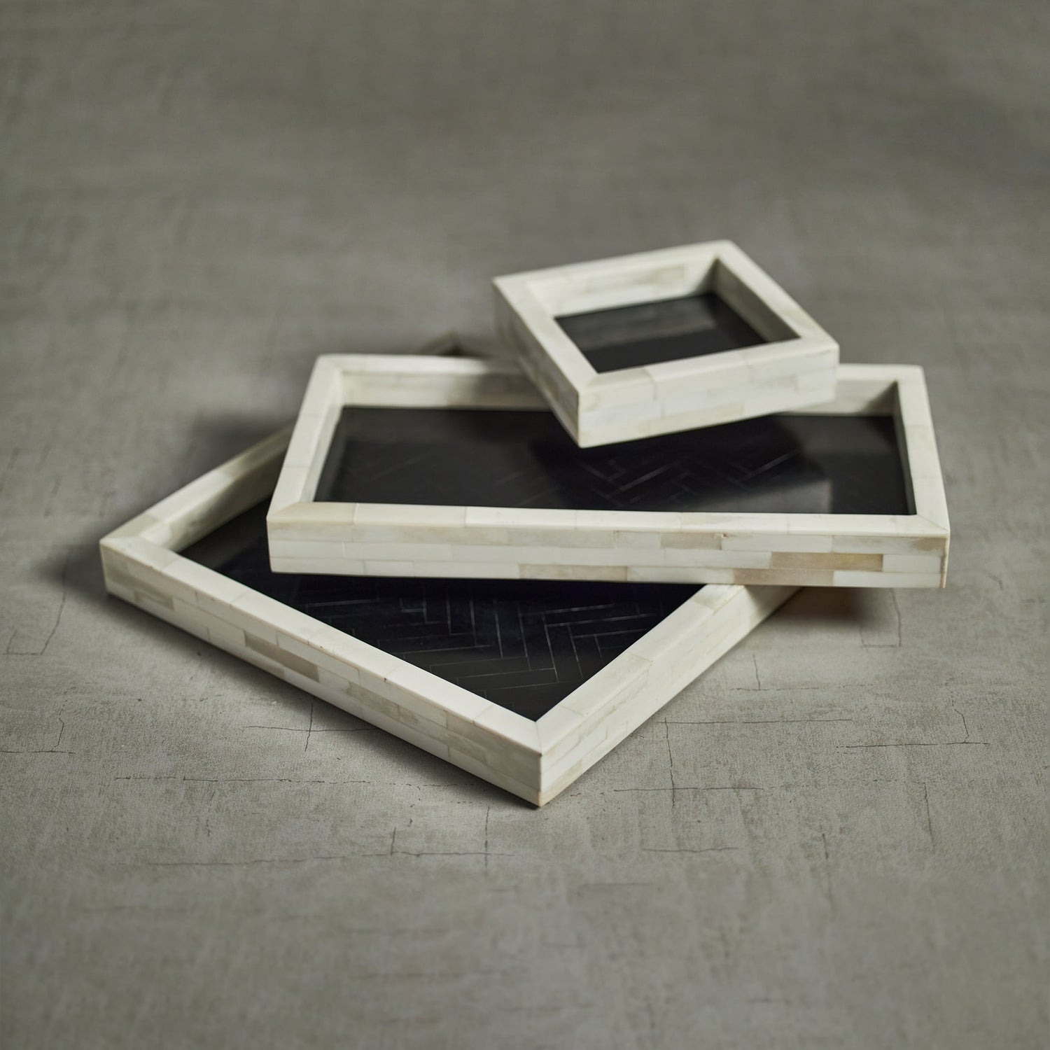 Maha White Bone with Black Inlay Tray - Square