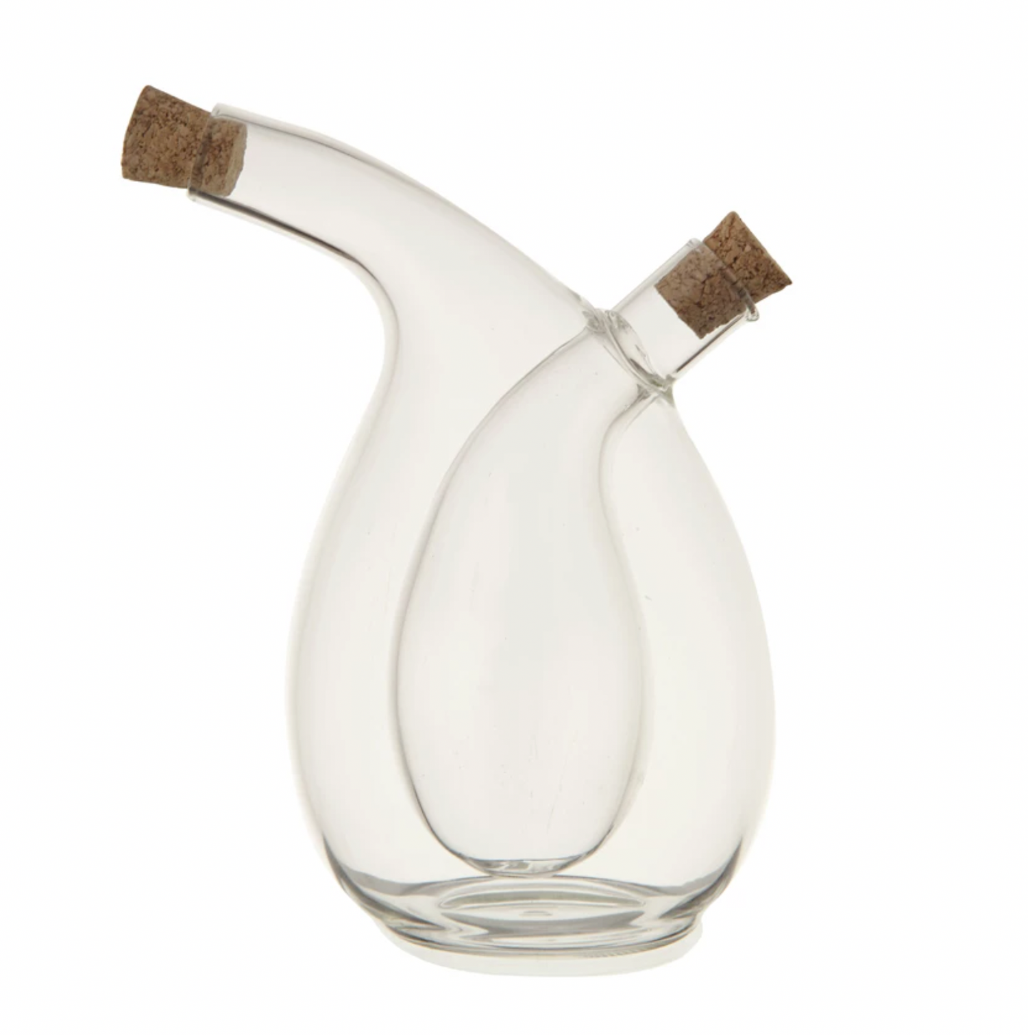 There is nothing like having one container inside the other. Each has its own opening and cork closure. They are both clear making the contents completely visible. Just open one end and pour the vinegar. Open the other and pour the oil. This is the ultimate in oil and vinegar convenience.