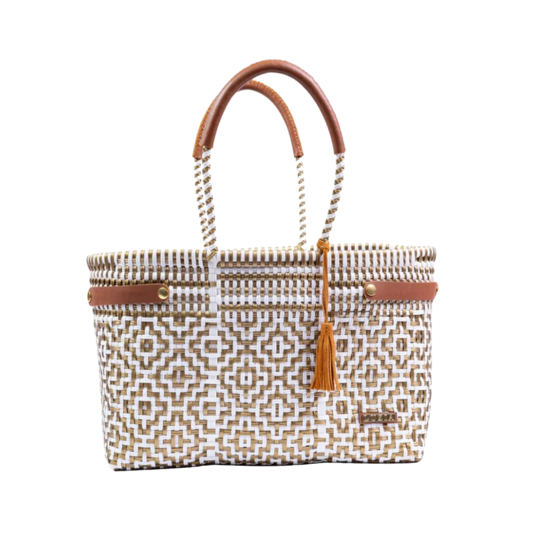 Carry all your needs in style with the Open Basket Jumbo - perfect for the beach or grocery trips. This versatile tote features a diamond white gold design, making it a must-have accessory for any outing. Don't compromise on fashion or function with this great beach bag!