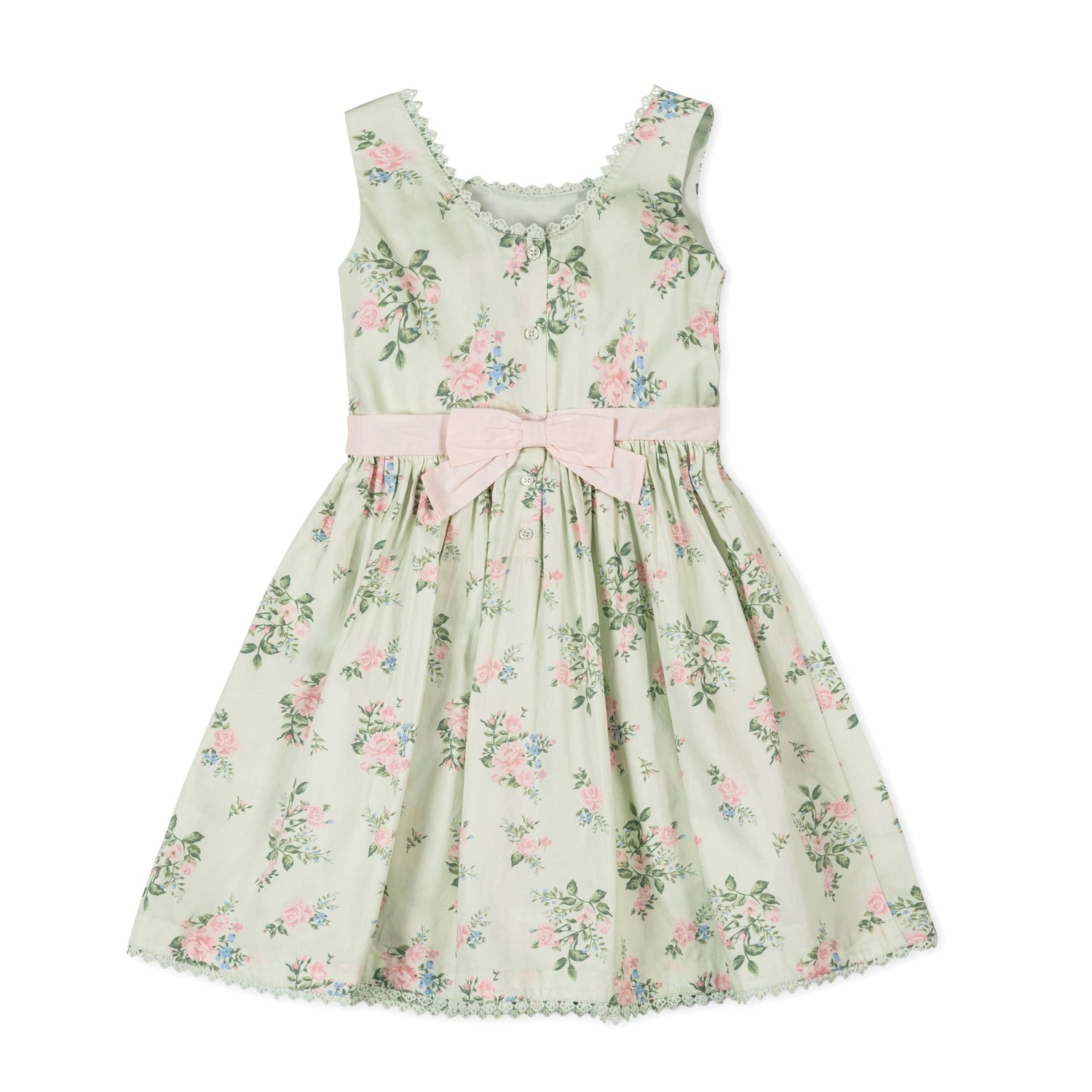 Can you say stunning? Jumpstart the season with one of our favorite party dresses for girl. Crafted from soft organic cotton sateen, our refined dress features a beautiful neckline with crochet trim, full skirt, and bow detail with button closure down the center back.