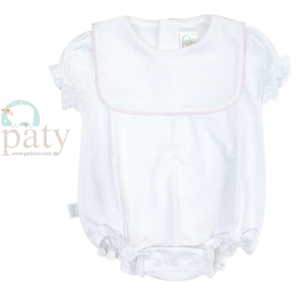 Decrease quantity for Pima Bubble w/ Bib | White w/Pink Piping