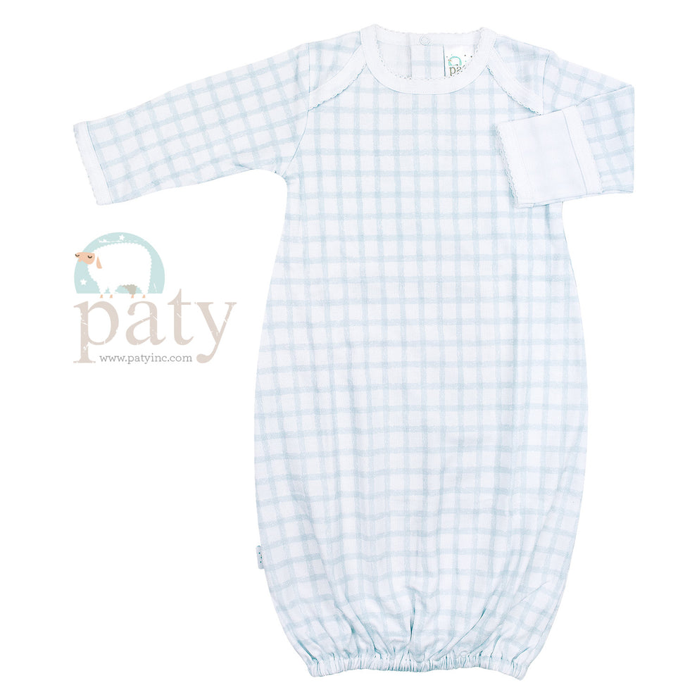 Pima Overlap Shoulder Gown | Blue Gingham