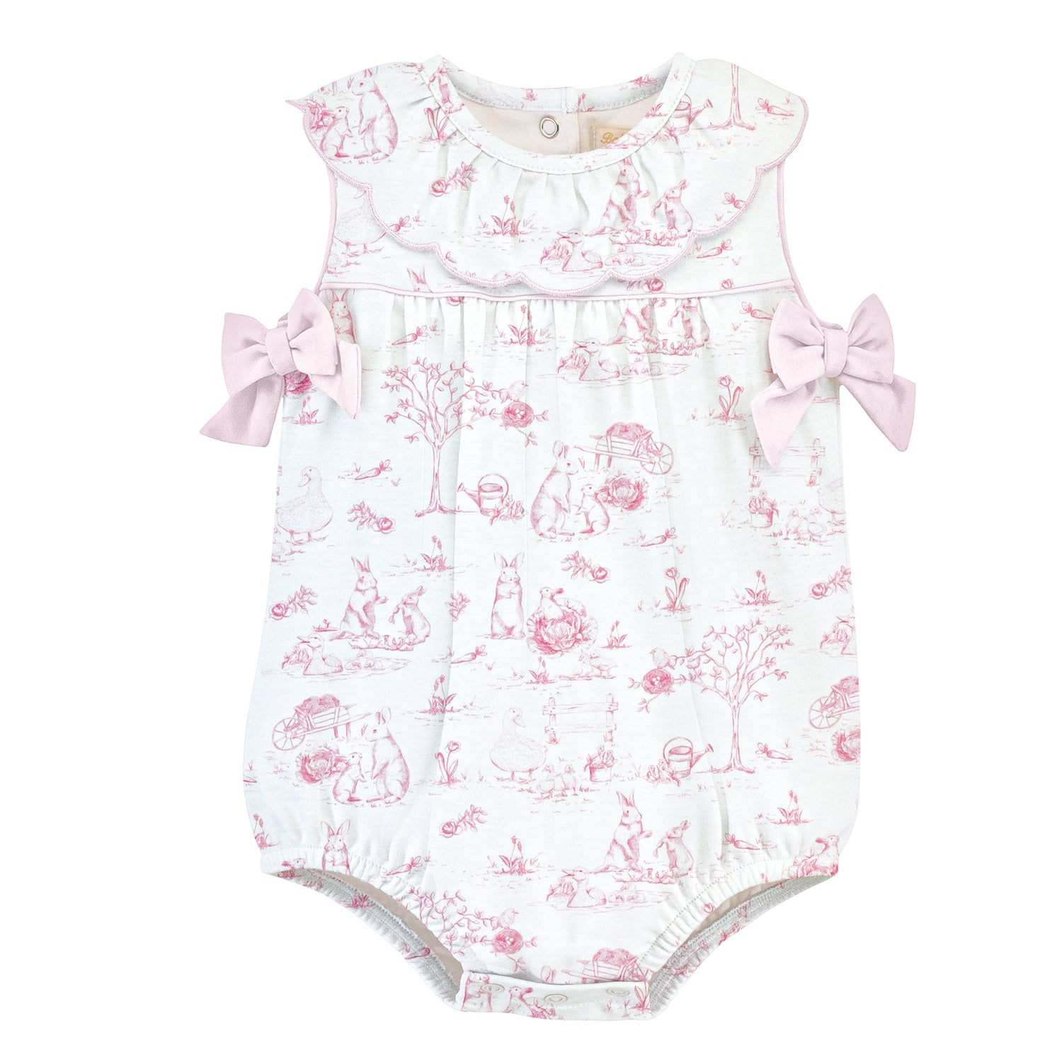 Increase quantity for Pink Bunnies Toile Bubble w/Collar + Bows