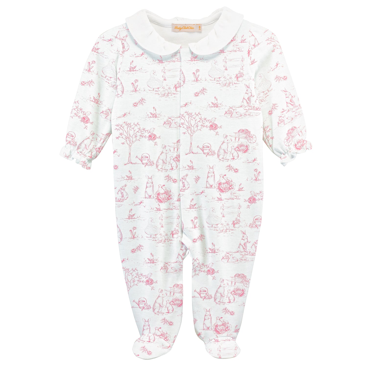 Decrease quantity for Pink Toile Bunnies Footie w/Round Collar