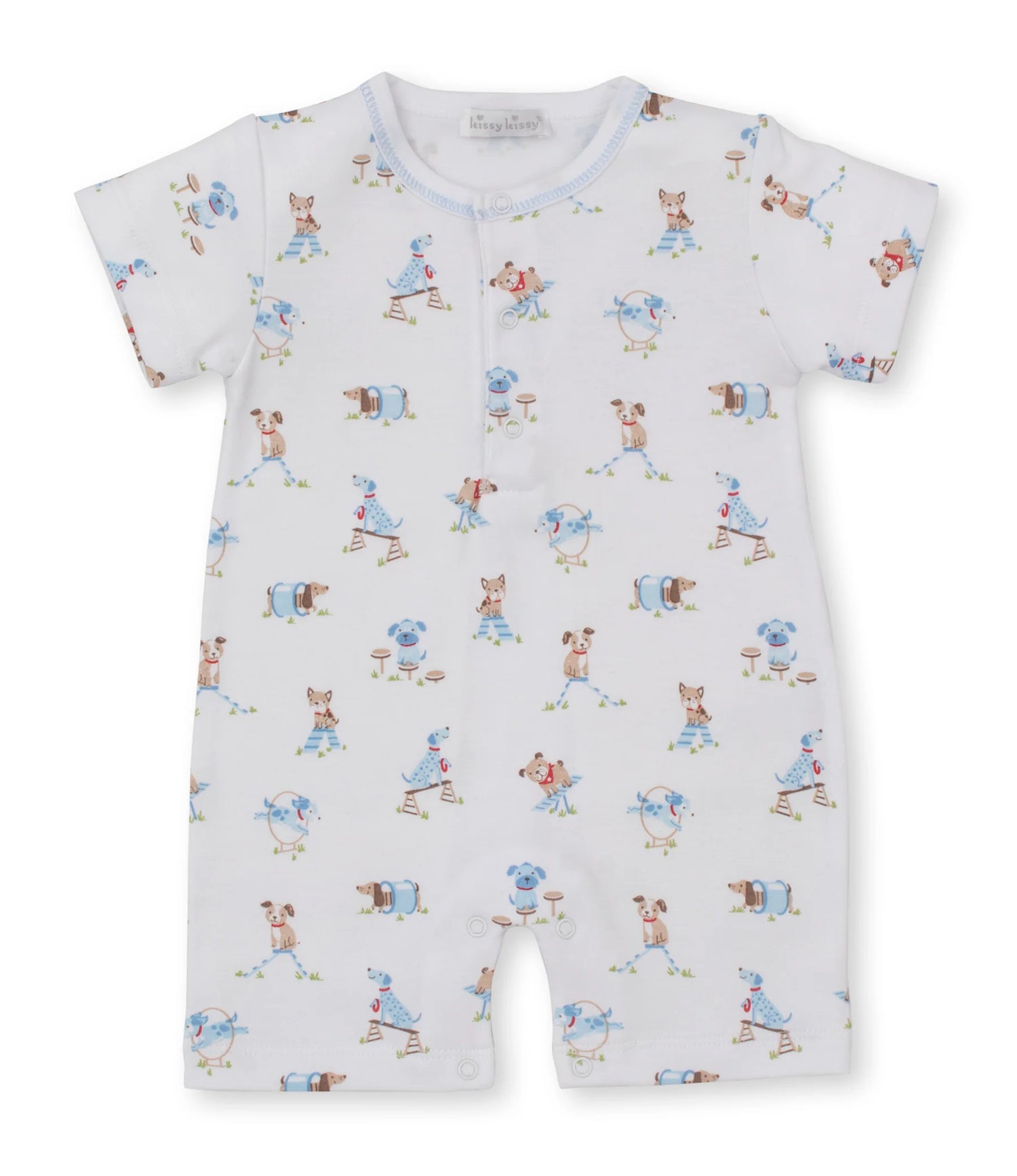 Our fun, allover playground pups print covers this cozy romper for your baby. Made from the softest Pima cotton for ultimate comfort.
