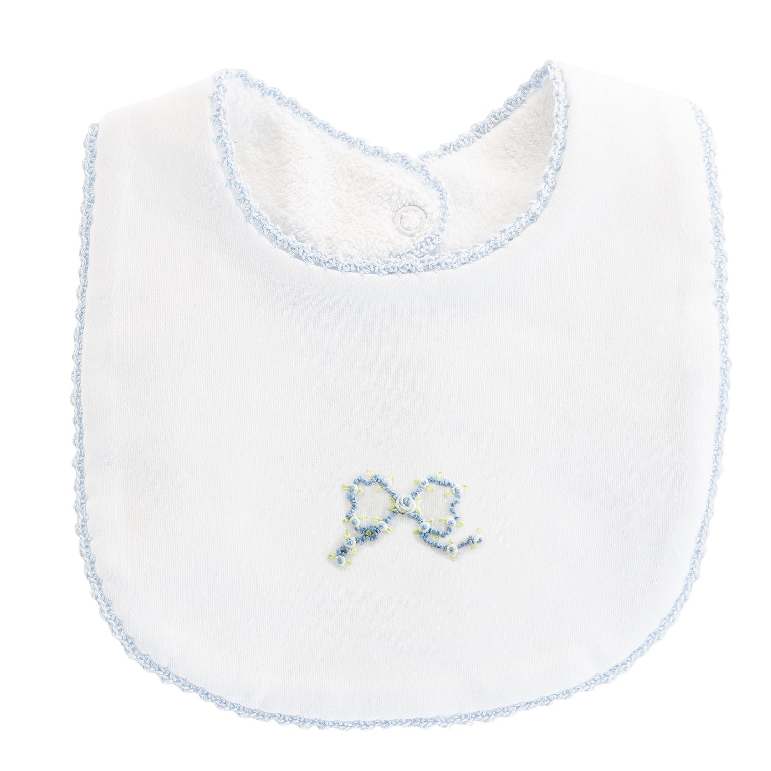 Increase quantity for Pretty Bows embroidered Bib w/Crochet Trim | Blue