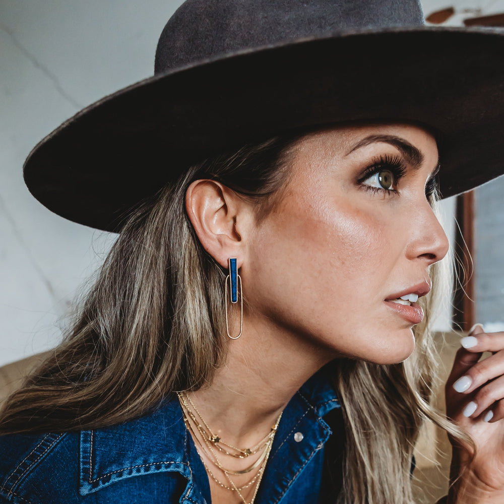 Decrease quantity for Rhodes | Gold oblong with blue stone 2.25" long