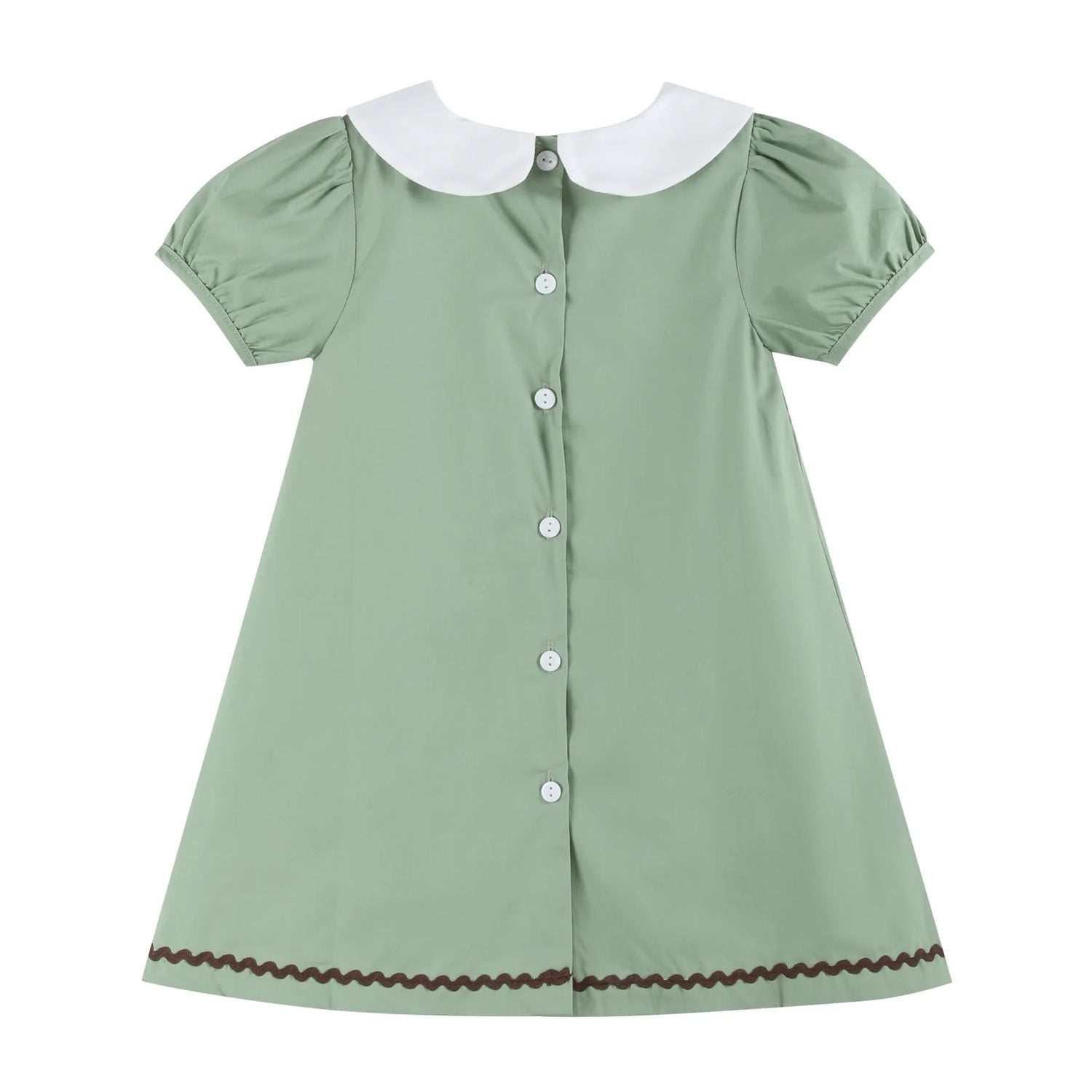 Gobble up the cuteness with our Sage Green Turkey Collared Dress! Adorned with an adorable appliqué turkey, this dress is a festive delight for Thanksgiving celebrations. In charming sage green, it's the perfect outfit for your little one to strut into the holiday season with a dash of Thanksgiving charm.