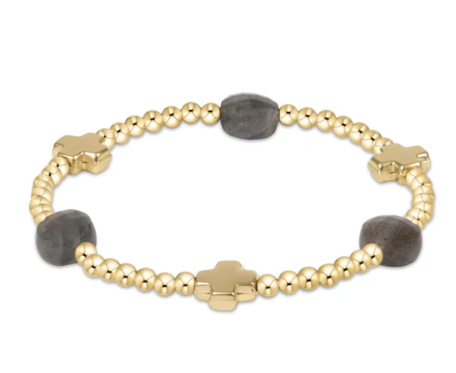 Signature Cross Admire Gold Pattern 3mm Bead Bracelet | Labradorite