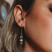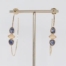 Increase quantity for Suede | Gold hammered hoop with blue stones 2.5"
