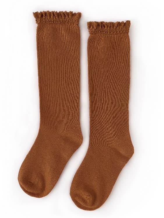 Sugar Almond Lace Top Knee High Socks