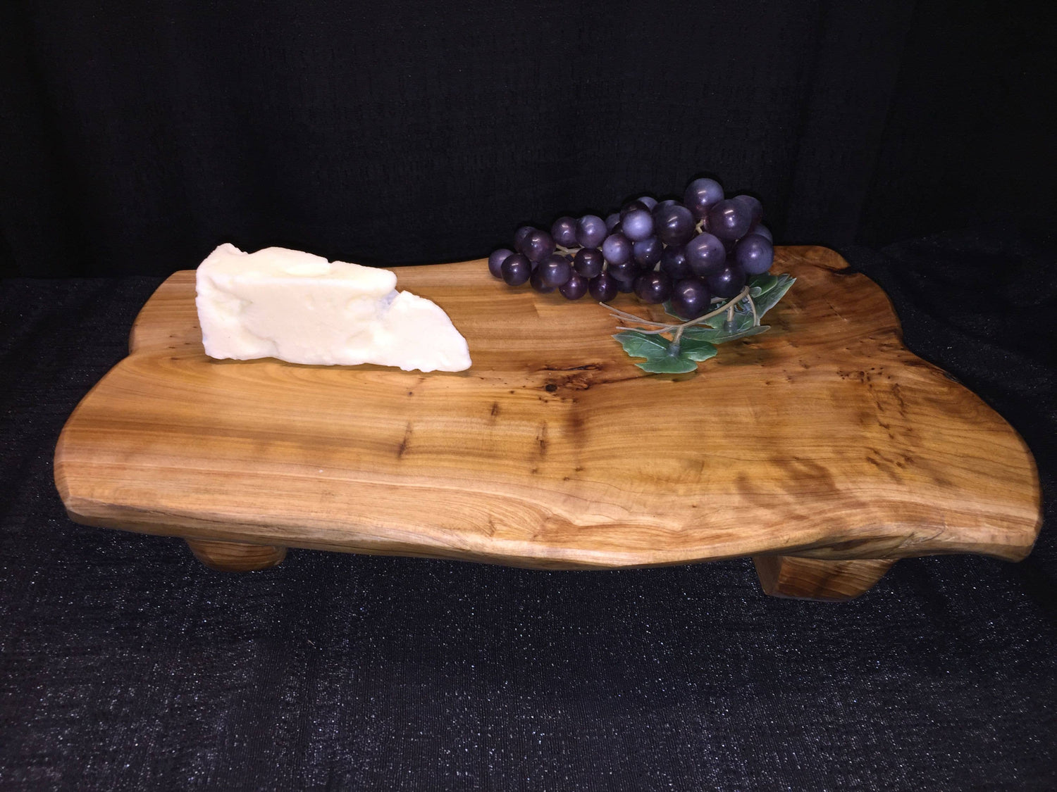 All of our root wood collection are hand-crafted from reclaimed Cyprus stumps. Each piece is unique. These are coated with a water-based lacquer that is food safe. Just wash with soap and water. Size: 8-10" / 16" / 2".