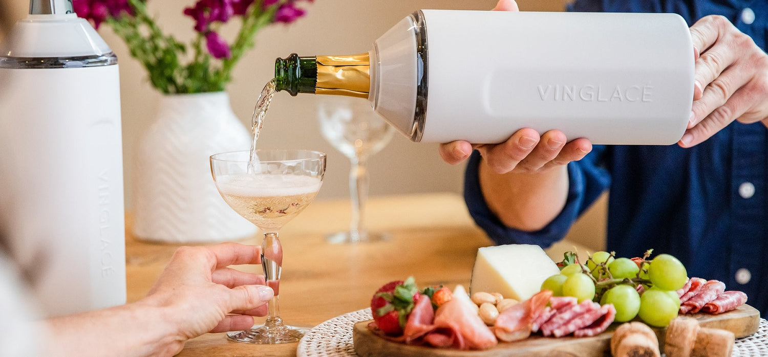 The Vinglacé portable bottle insulator, made of stainless steel, double walled, and vacuum insulated, keeps your wine, champagne, and sparkling water chilled for hours. Lightweight and easy to carry, you can enjoy your wine anywhere you go.
